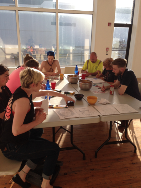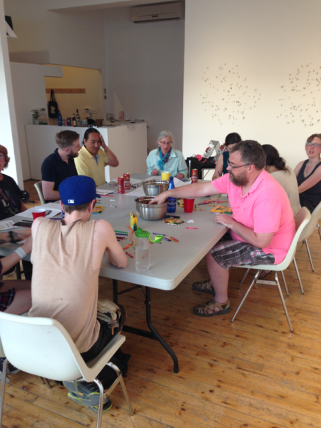 It was a fun night of making art, eating snacks, and talking politics. We even created a cool mural with all of the coloured pages. Thanks to everyone for coming!