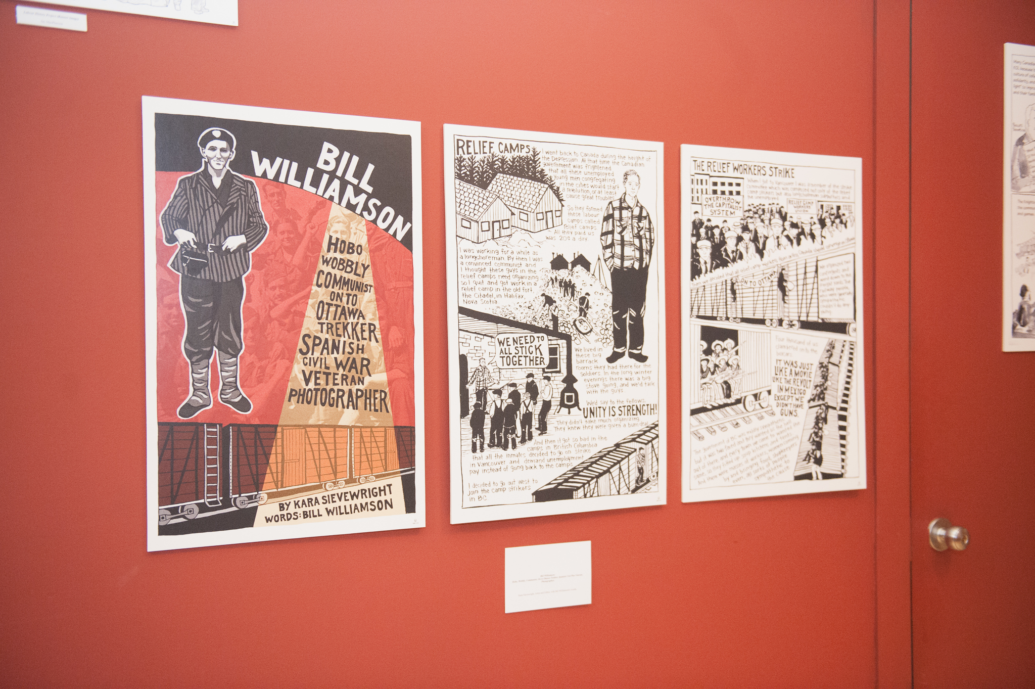 Three pages from our inaugural project, May Day: A Graphic History of Protest, are also part of this exhibit. Although not specifically focused on the Pacific Northwest, Cumberland makes an appearance in the comic, alongside general labour history important to Canada.