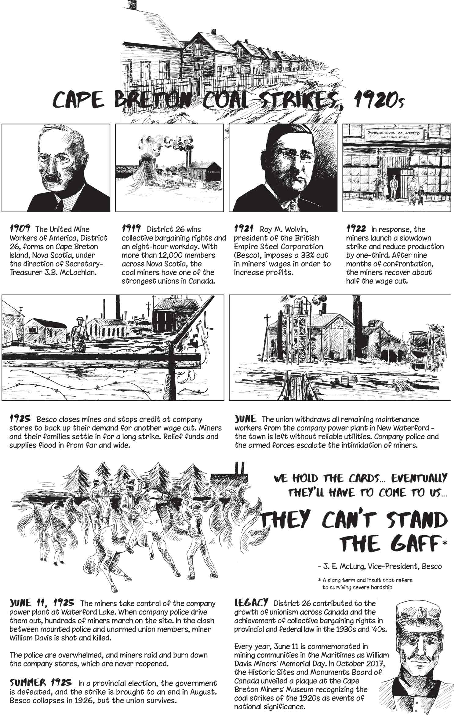 “They can’t stand the gaff!” The words failed to intimidate the coal miners. Instead, the insult contributed to their resistance, and “standing the gaff” became a rallying cry during the long 1925 strike. That strike was the culmination of the labour war in the Nova Scotia coal mines in the 1920s, an episode of class conflict in Canadian history as dramatic and consequential as the 1919 Winnipeg General Strike.